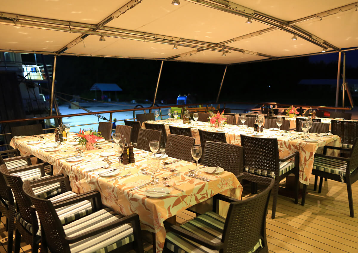 Wypoczęci, zrelaksowani, wybawieni w wodzie i zauroczeni miejscem wróciliśmy na kolację na statku.